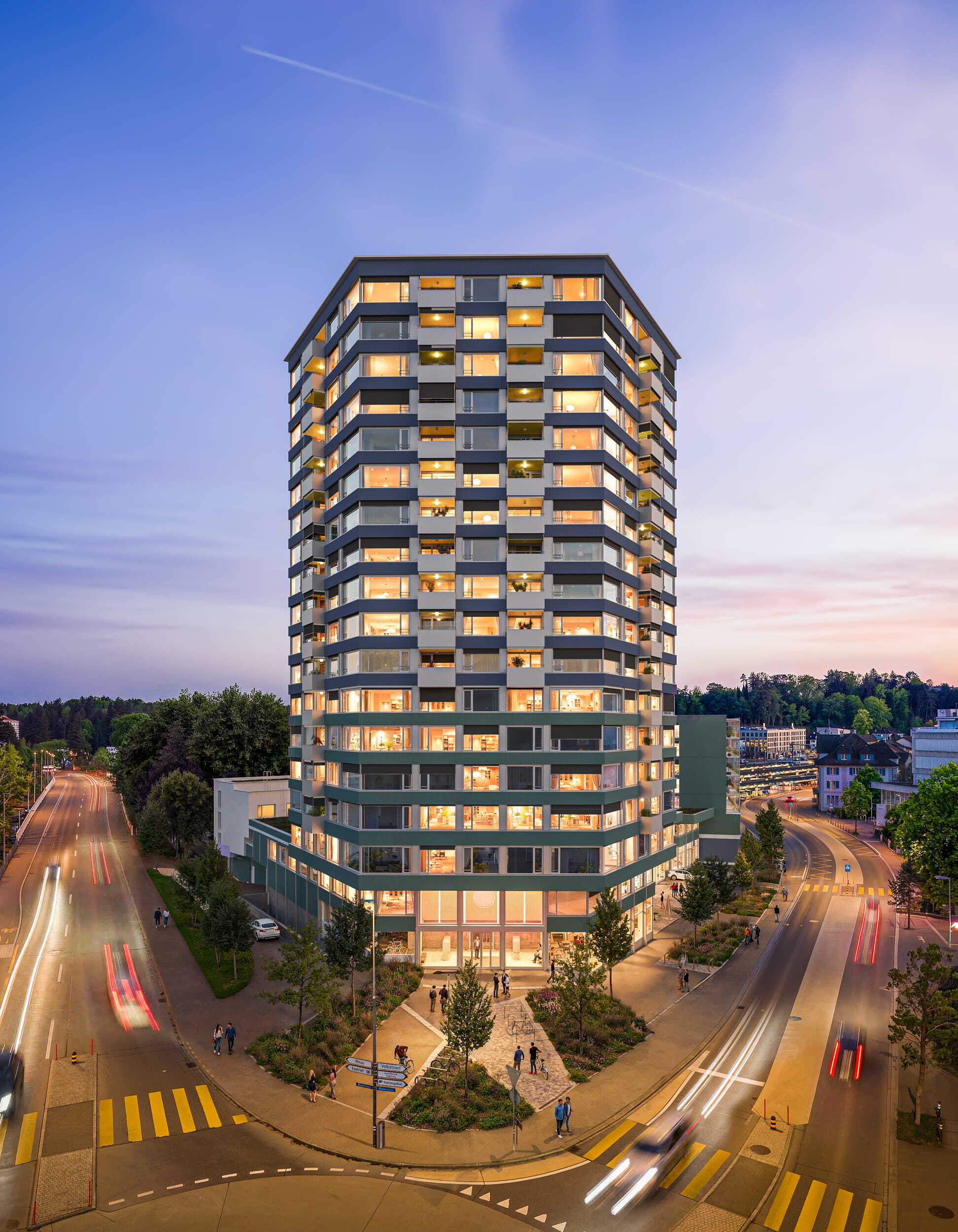 With retail space, studios, modern offices and rental flats, the project brings living and working together in an ideal way. Short distances, urban comfort and private retreats complement each other to create a new centre for everyday life, work and leisure.